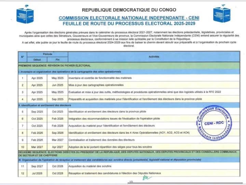 La Commission Électorale Nationale Indépendante (CENI) a officiellement présenté, vendredi 4 avril 2025 à Kinshasa, sa feuille de route pour la période 2025-2029, visant à préparer de manière anticipée les élections combinées prévues en décembre 2028.