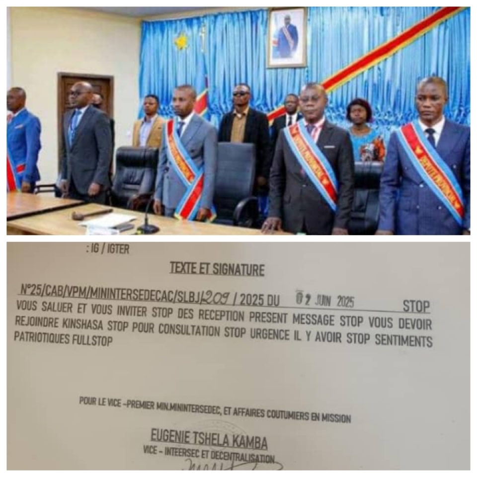 Dans un télégramme officiel signé ce lundi 02 juin 2025 au nom du Vice-Premier ministre Jacquemin Shabani, actuellement en mission, le numéro 2 de la territoriale au pays, Eugénie Tshiela Kamba, souligne l‘urgence de cette convocation.